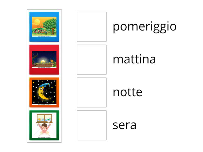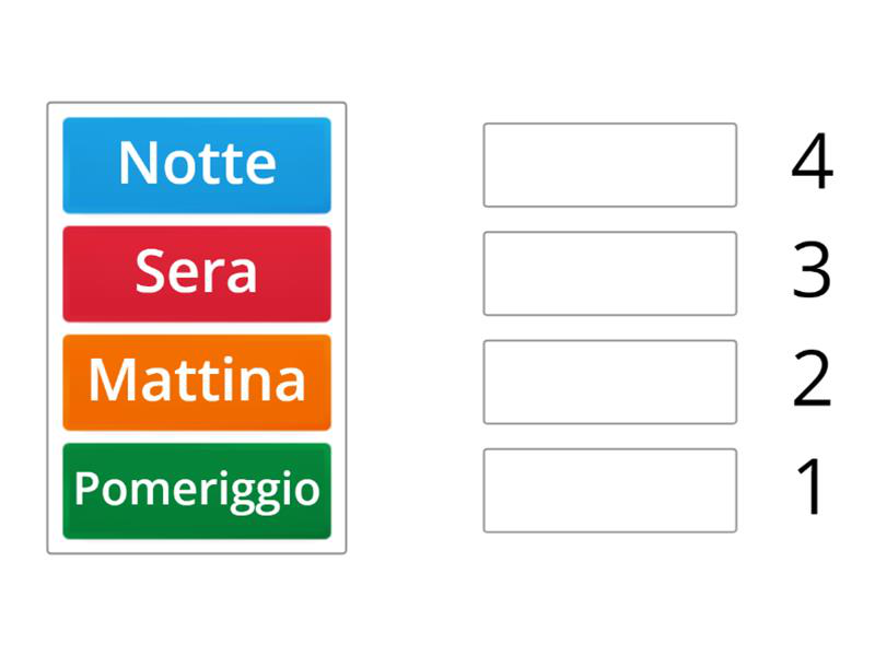 Metti in ordine le parti del giorno a partire dal mattino.