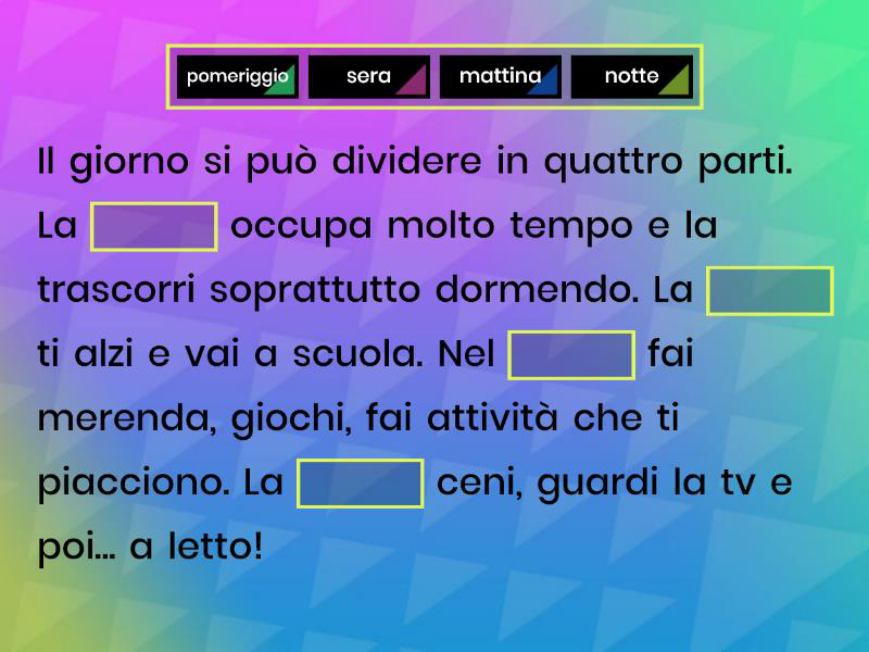 Parola mancante - Trascina ogni parola chiave e rilasciala nella posizione corretta